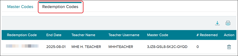 For ConnectED Student Editions, click the Redemption Codes tab.