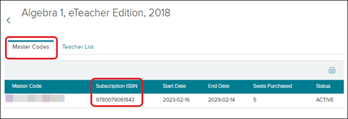 Locate ISBNs in the ConnectED Manage Master Codes list to support redemption and distribution.