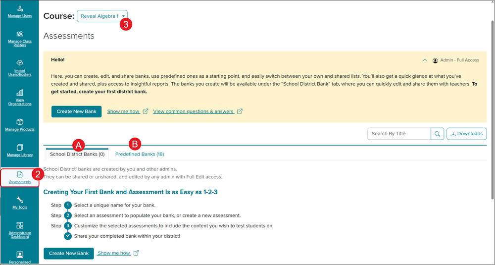 This article walks Curriculum Administrators through accessing District Banks from within the Admin Tools.