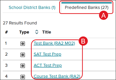 You can also add assessments by clicking on the Predefined Banks (A) tab, then click on the Title (B) of a McGraw Hill bank.