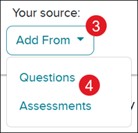 4. Click on Questions or Assessments based on where you want to pull questions from.