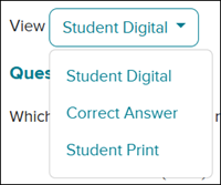 When previewing the questions, you will be able to toggle between seeing the Student Digital, Correct Answer, and Student Print views.