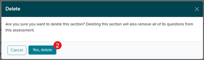 When deleting a section you want to keep in mind that it will also remove all questions associated to that section.