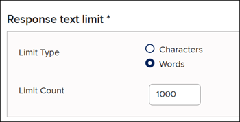 For certain question types, you will need to enter a Response text limit.