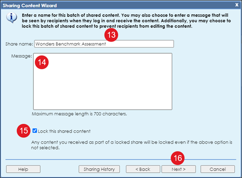 14. Enter a Message for the admins/teachers that you are sharing the item(s) with. This is optional.