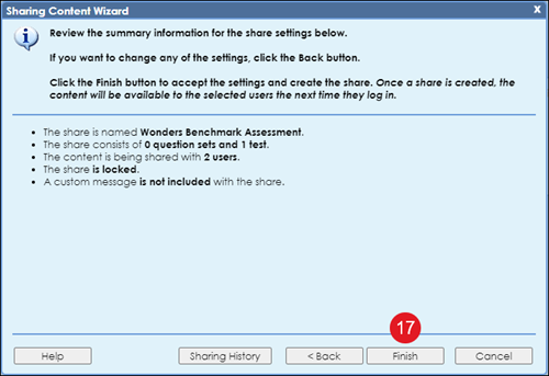 17. Click the Finish button on the summary page.