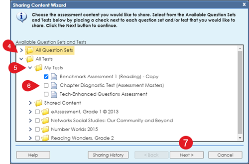 4. Expand the All Question Sets or All Tests section where what you want to share is housed.