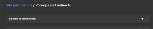 5. To disable the pop-up blocker, toggle off the Blocked (recommended) option.