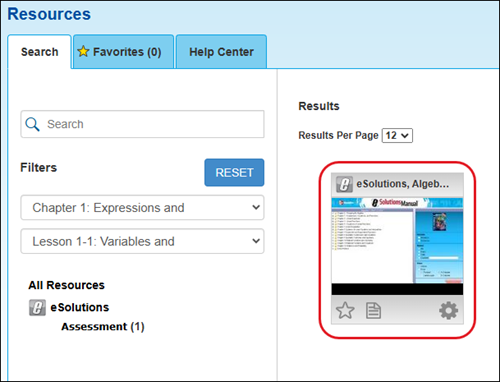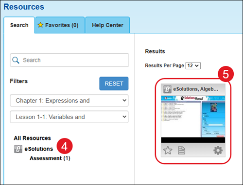 3. Scroll through the Lesson Resources and click on the eSolutions (e) icon.