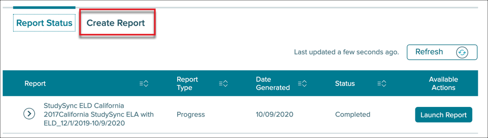 3. On your main Reports page, you can access previously saved assessment reports. To build a new report, select Create Report.