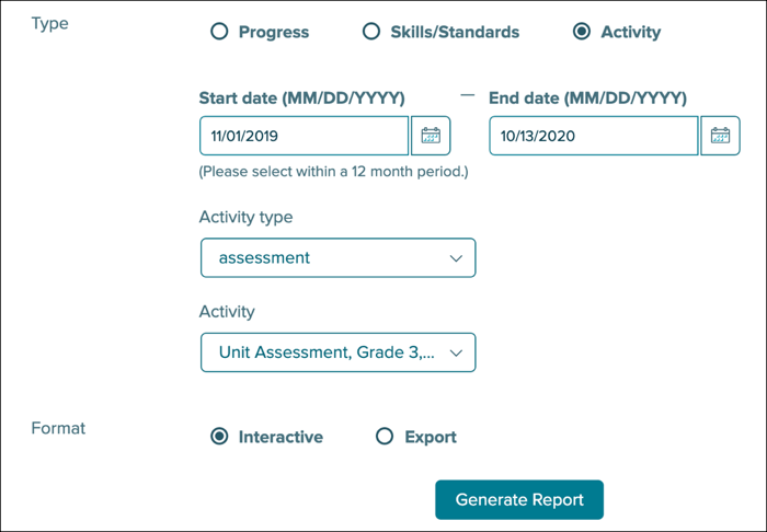 10. Click Interactive to view the report from your browser window. Alternatively, you can select Export to download a copy of the report.