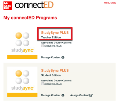 1. Launch your StudySync teacher edition from My ConnectED Programs.