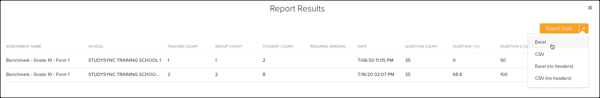 - Organization Filter: You can choose to filter assessment data by specific schools.