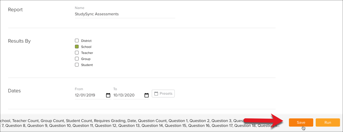 7. Click Run to view your report in browser. From here you can export the report as a .xslx or .csv file.