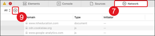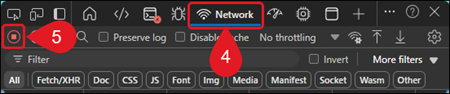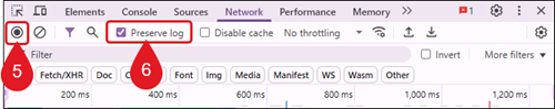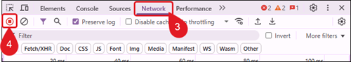 6. Reproduce the issue while keeping the Network tab open.