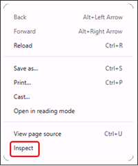 2. Right-click on the page and select Inspect from the menu.