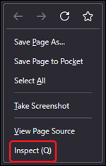 2. Right-click on the page and select Inspect (Q) from the menu.