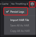 4. To the top right of the console, click the gear icon and select the Persist Logs.