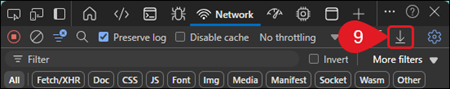 9. Click on the Export HAR (down arrow).