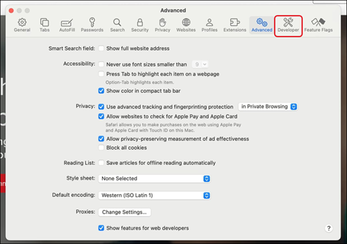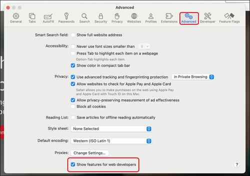 5. Check the box for Show features for web developers at the bottom.