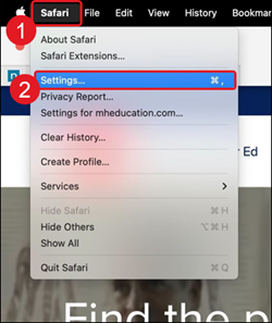 2. Click on Safari in the top navigation menu.