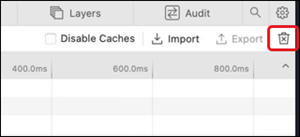 5. Click the trash can icon to the far left of the Network tab.