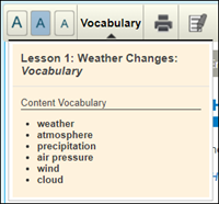 2. You can access all the Vocabulary words for the lesson in one place by clicking the Vocabulary option on the toolbar.