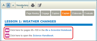The Student Lesson is the online version of the book text. Follow this document for an overview of using the Student Lesson available in Inspire Science 2017 on ConnectED.