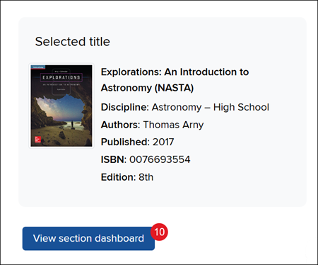10. Click the View section dashboard button.
