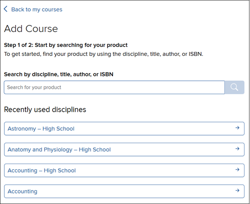 2. Search by discipline, title, author, or ISBN for the course you need.