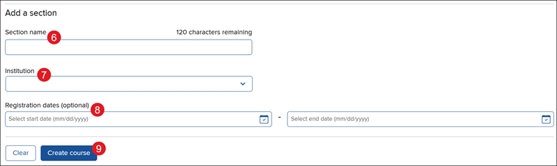 6. Enter a Section name. This is the name the students will see.