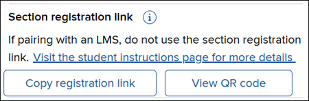 11. From your section Dashboard, provide the students the registration link or QR code for them to be able to register for the course. Each section will have its own registration information.