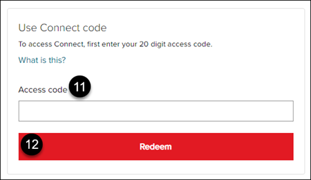 11. On the Course Access page, enter the 20-character Connect code that was provided by your teacher.
