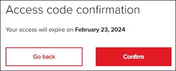 13. On the Access code confirmation page, click the Confirm button.