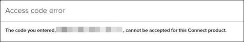 If you get an Access code error pop-up advising that the code you entered cannot be accepted for the Connect product, you will need to reach out to your teacher as they will need to give you a different code, or they have the wrong course attached to their teacher account.