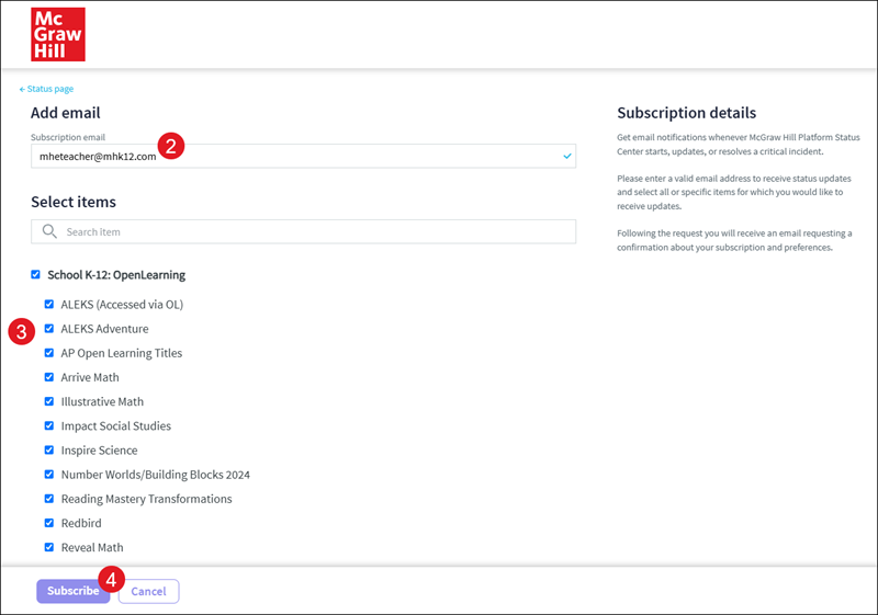 We recently updated the look on our Platform Status Center and recommend subscribing to the site. Get email notifications whenever McGraw Hill Platform Status Center starts, updates, or resolves a critical incident.