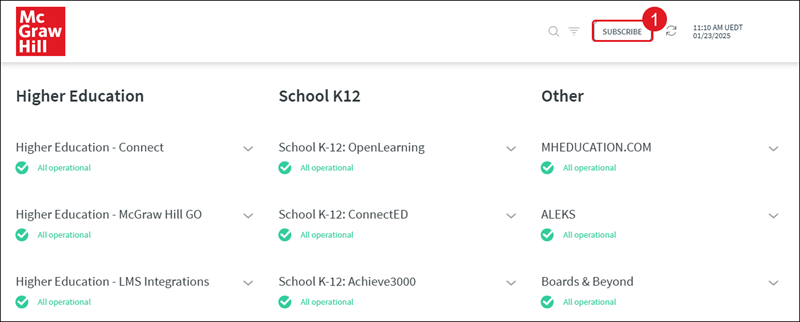 McGraw Hill Education Platform Status Center