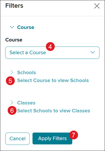 4. On the Filters panel, Select a Course from the drop-down.