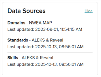 This article provides Reporting Administrators with steps and information on accessing the Personalized Learning reports for PreK-12 data for students who are using Reveal Math, ALEKS via Open Learning, Redbird, and NWEA MAP Growth assessments. The data is transferred into an interactive Standards and Skills Graph report that aligns the data to state standards and corresponding skills to track proficiency.