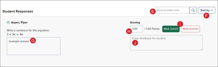 F. Click Sort by to sort the list of Student Responses alphabetically or by score.