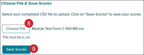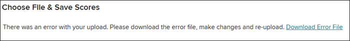 Note: If you receive the error message: “There was an error with your upload. Please download the error file, make changes, and reupload,” double check that you have selected the correct scoring file that goes along with the assignment you selected.