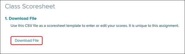 5. On the Class Scoresheet page, click on the Download File button to download the assignment CSV file.