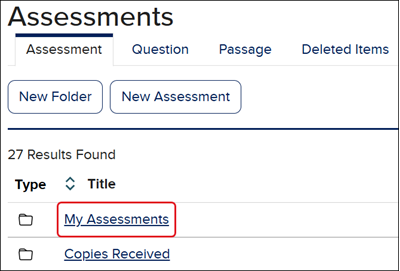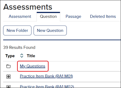 If changes are made to an assessment question, a copy of the edited question can be found in your My Questions folder.