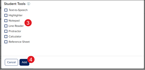 3. Check the box next to any Student Tools you would like them to have access to for that section.