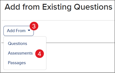 4. Click on Questions, Assessments, or Passages based on where you want to pull questions from.