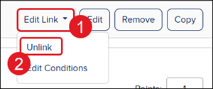 You can also click the Unlink button on the Question Link pop-up.