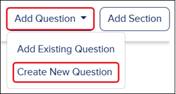 As an alternative, you can create a New Question from under the Question tab on the Assessments page. You will then be able to follow the steps in the Add Existing Question section to add the question to the assessment.