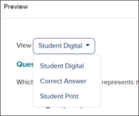 When previewing the questions, you will be able to toggle between seeing the Student Digital, Correct Answer, and Student Print views.