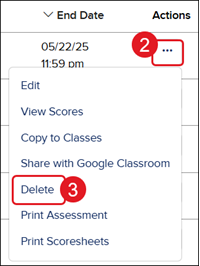 This article walks teachers through how to delete an assigned assessment and custom made assessments.