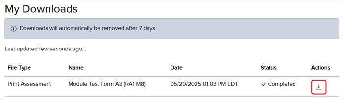 7. Click the Download button in the Actions column to save the file(s) to your device.
